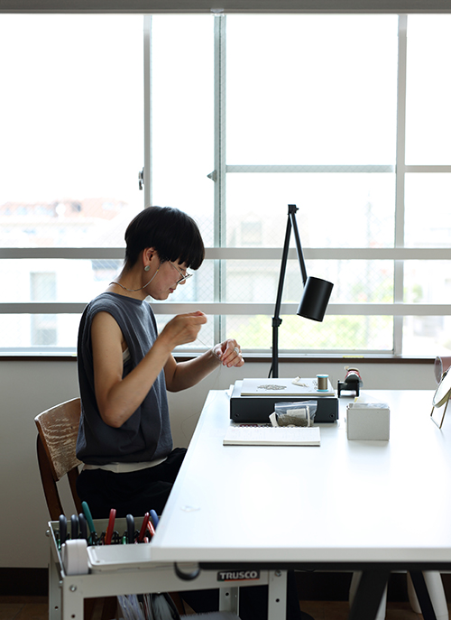 手仕事ならではの温かみがありながら、構築的で凛とした佇まいのアクセサリーたち。取り扱いショップをはじめ、展示会でも購入することができます。色や形をカスタムオーダーすることもできて組み合わせは無限! 自分だけのスペシャルなアクセサリーに出合えるはずです。