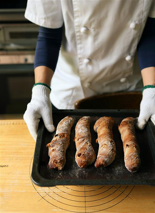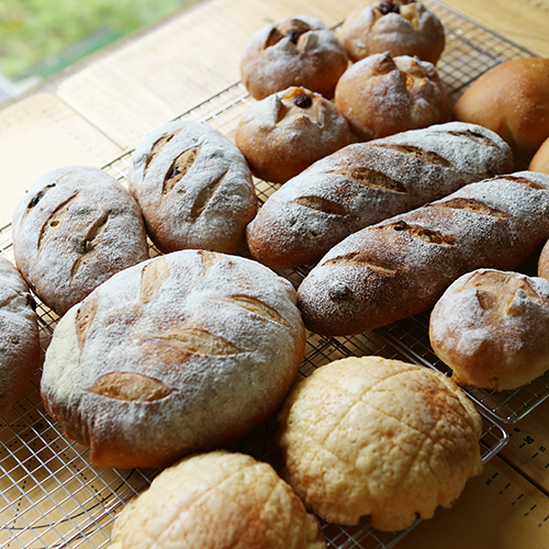 「切りっぱなし」という意味がある素朴で味わい深いリュスティック。外は香ばしく中はしっとりした歯切れのいい食感です。工房では白神こだま酵母や自家製酵母を使ったパン教室も行われ、講師の資格を取るためのレッスンから1dayレッスンまで気軽に参加することができます。