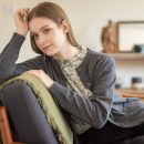 ソフトWOOLニットカーディガン ¥19,800 軽く、ふんわりと柔らかな肌ざわりのカシミヤ混ウールカーディガン。 首周りと前立て、ポケット口のリブ切り替えをデ...